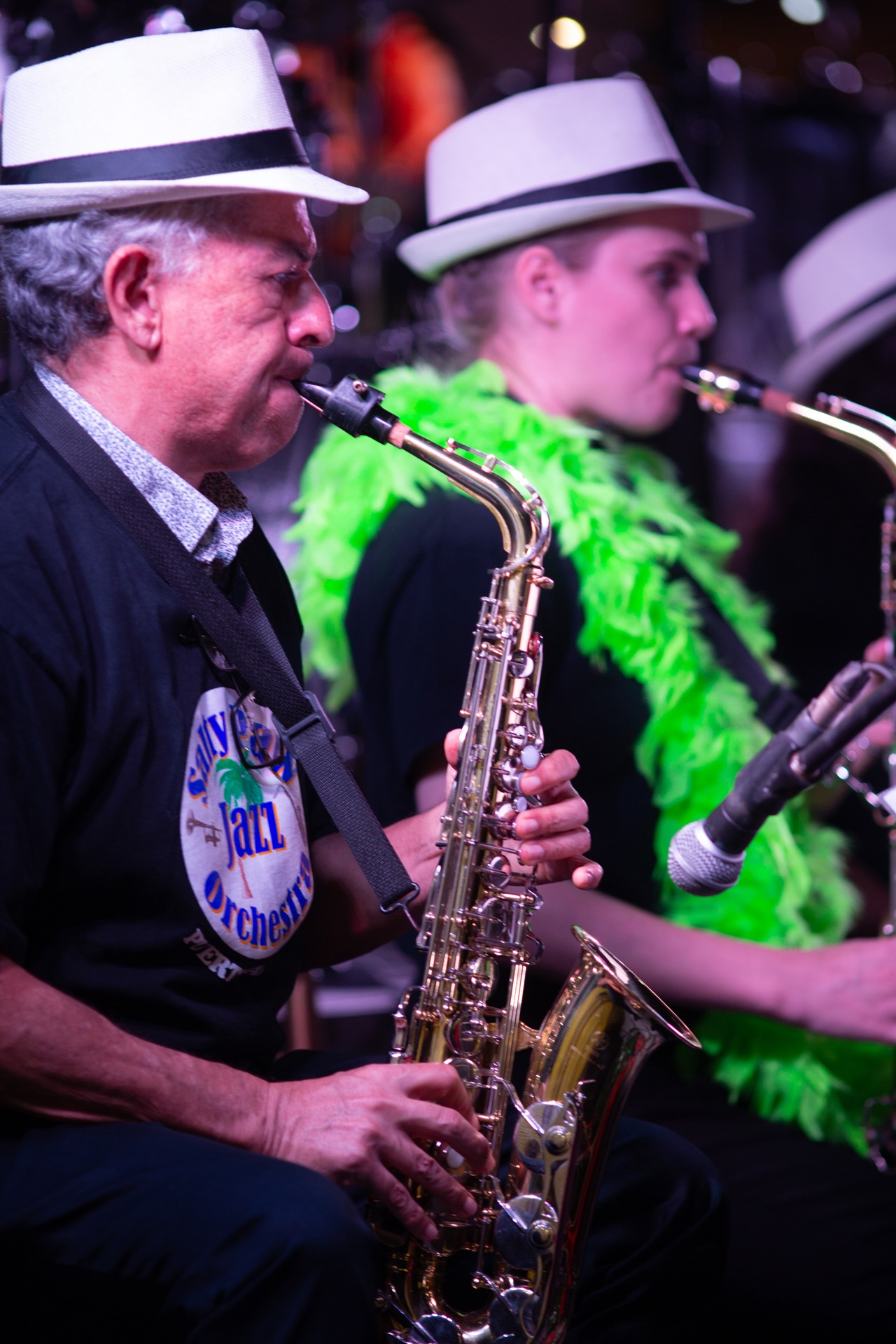 Salty Paw Jazz Orchestra is a big band that performs music from many eras, from the jazz hits of the 40s to contemporary pop in jazz arrangements.  Instrumentation includes horns, guitar, bass, piano, woodwinds, and even a cello!  It is a non-auditioned group. Anyone who can read music is welcome to join, from young students to seasoned professionals.  Every musician is given a chance to shine with improvised solos.  Rehearsals are weekly throughout the year, but part-time visitors to Puerto Vallarta only visiting during high season can play in the band. SPJO performs in public spaces and for IAMPV fundraisers.  Performers not only have the opportunity to play great charts but to have fun with other like-minded artists.